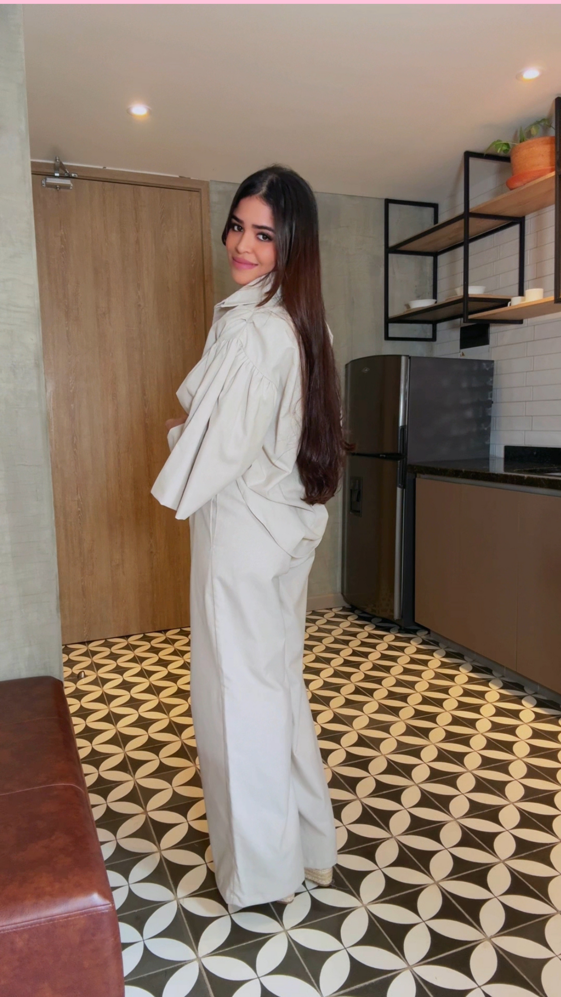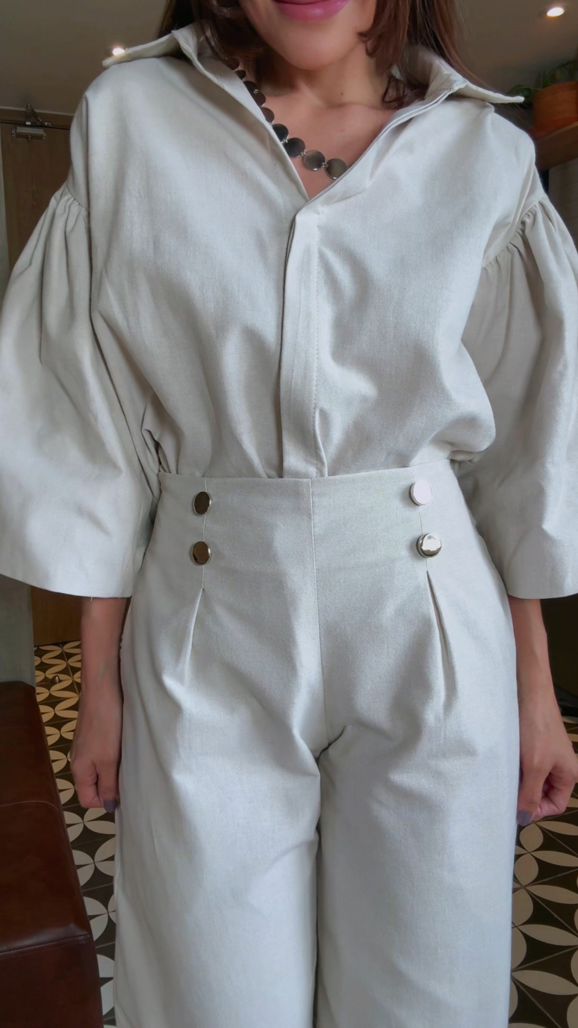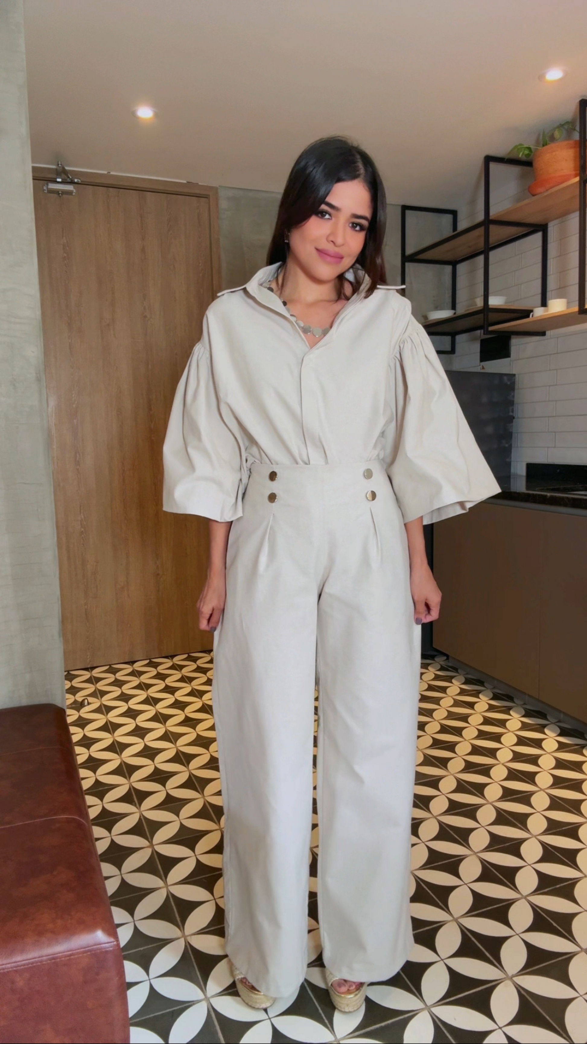 El Genovia Set combina elegancia y comodidad en una propuesta moderna y versátil. Confeccionado en algodón Oxford de alta calidad, ofrece una textura suave y fresca, su camisa presenta mangas XL estilo kimono, que aportan volumen y movimiento, pantalón de tiro medio-alto que estiliza figura y asegura un ajuste cómodo.